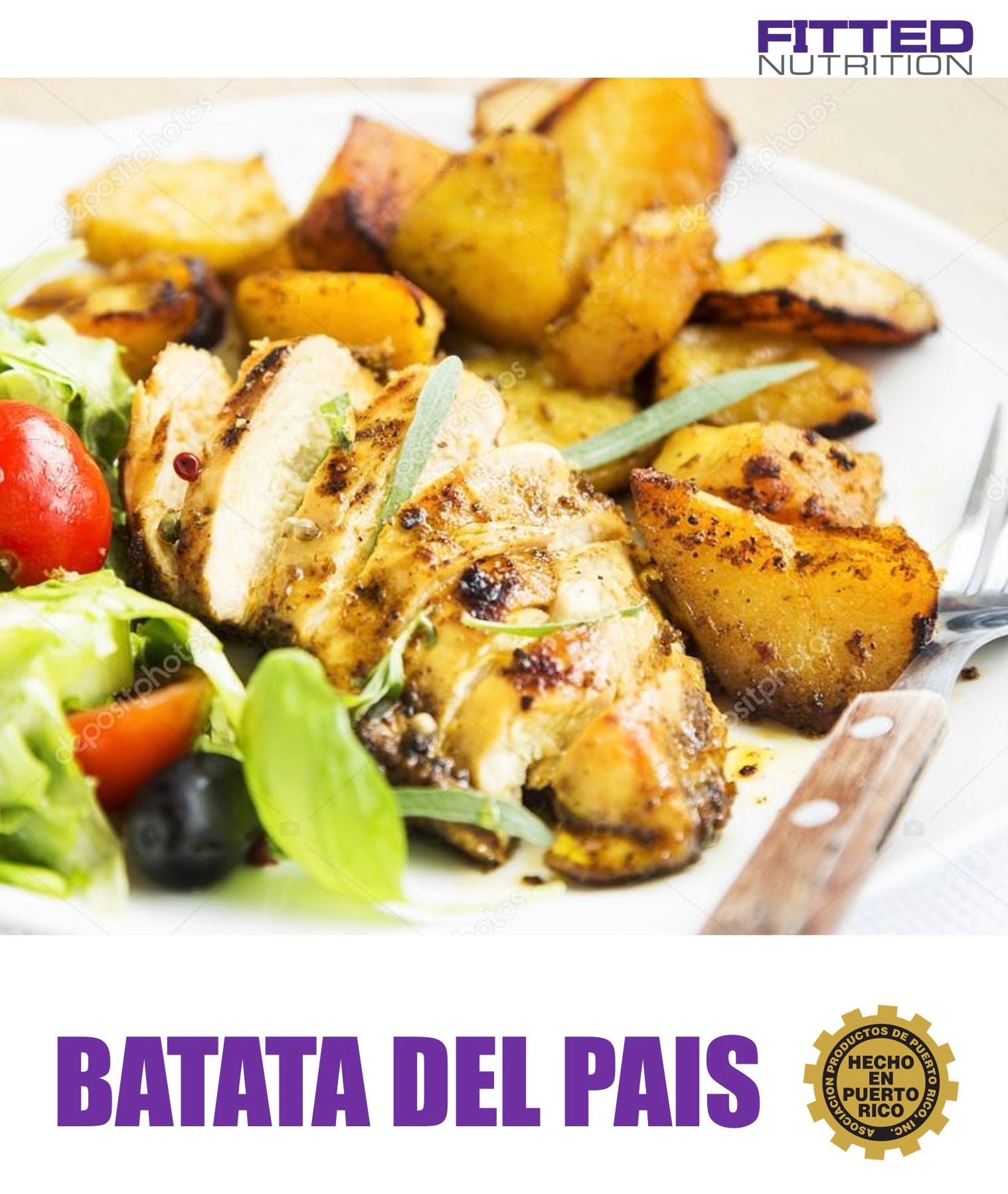 Batata Dulce del pais, asada a fuego lento, acompañada de nuestra tierna pechuga siempre fresca, sin hormonas ni antibióticos, y brocoli al vapor… 280 calorias extra saludables!!